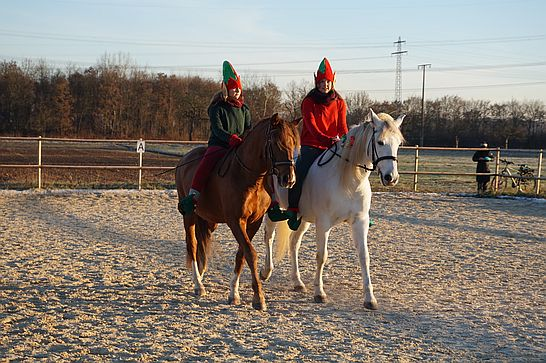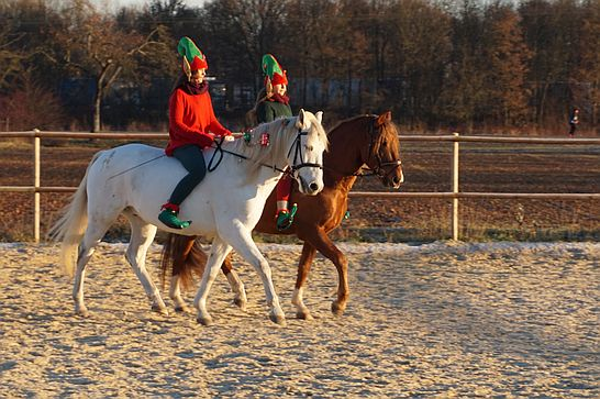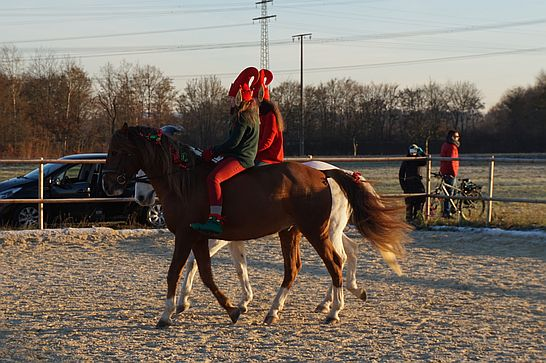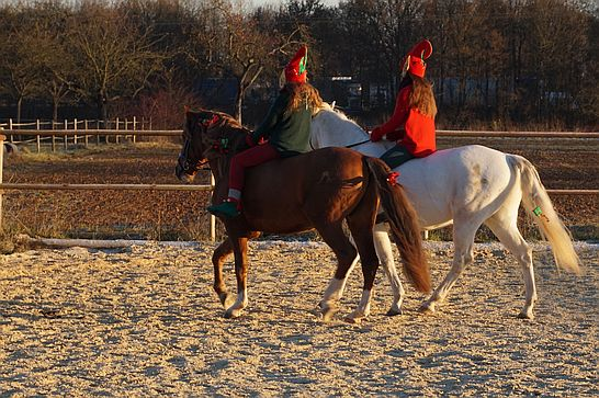 Am 04.12.2016 lud der Verein seine Mitglieder zu einer Weihnachtsfeier ein. Unsere Weihnachtselfen, Nina und Laura Schreiber, verzauberten das Publikum mit ihrer winterlichen Reitaufführung. Danach tauchte noch unerwartet der Nikolaus mit einer Überraschung für die Jugend auf. Bei Glühwein und Stockbrot ließen dann alle das Fest gemeinsam ausklingen.